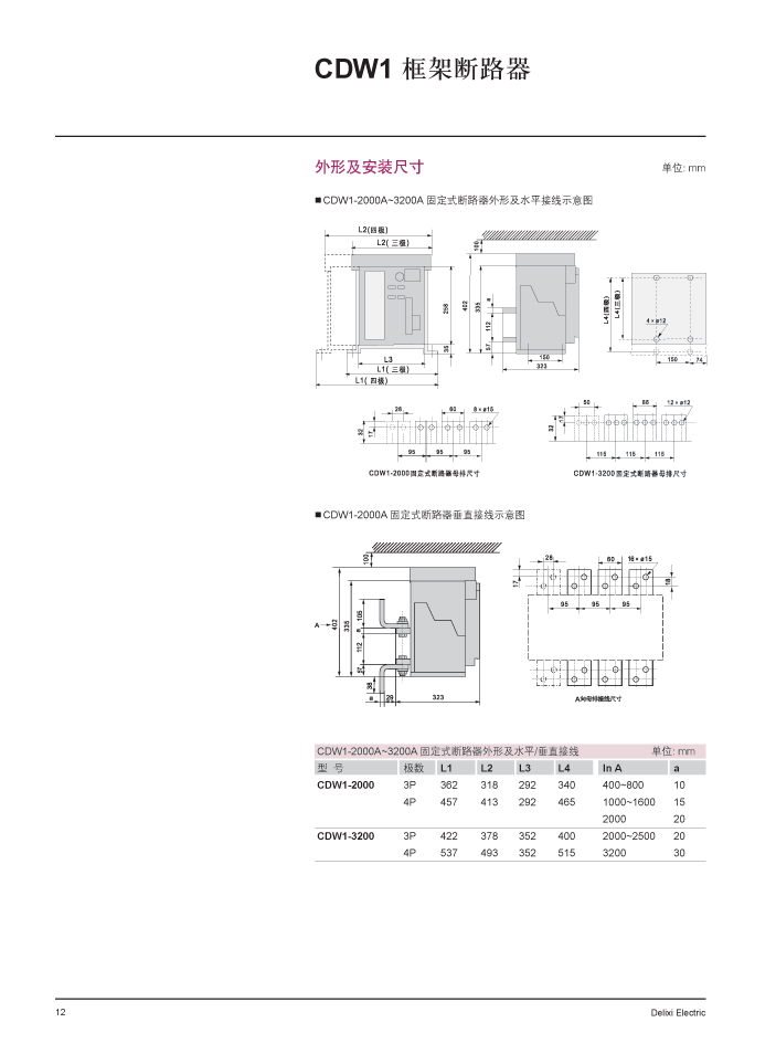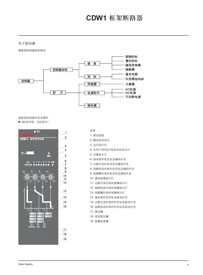 CDW1-2000 800A 3P固定式AC380V 长延时0.附,CDW1系列万能式断路器,DELIXI德力西