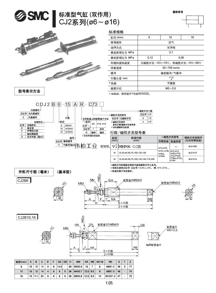 SMC标准气缸(圆形)CJ2系列CJ2B10-~)